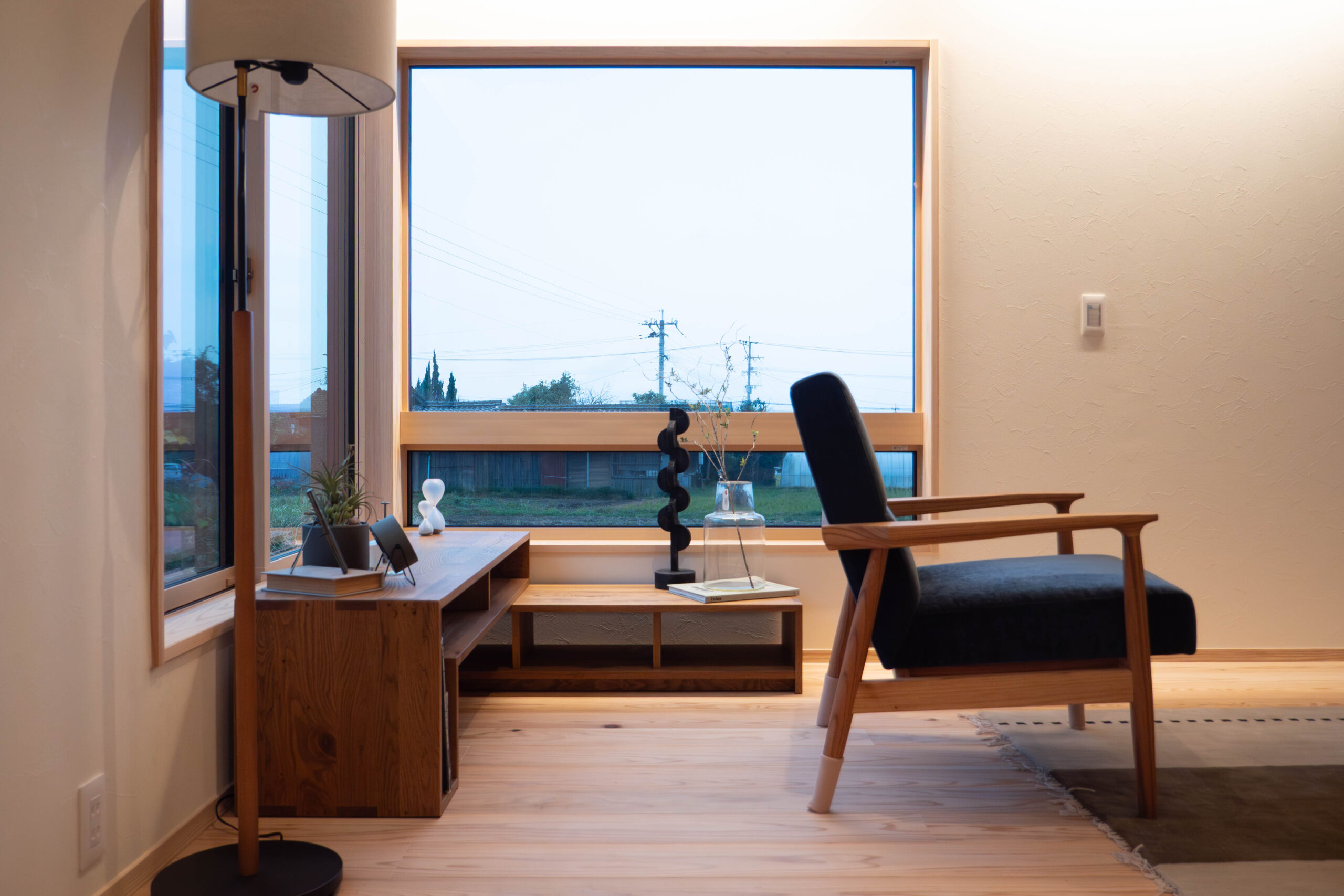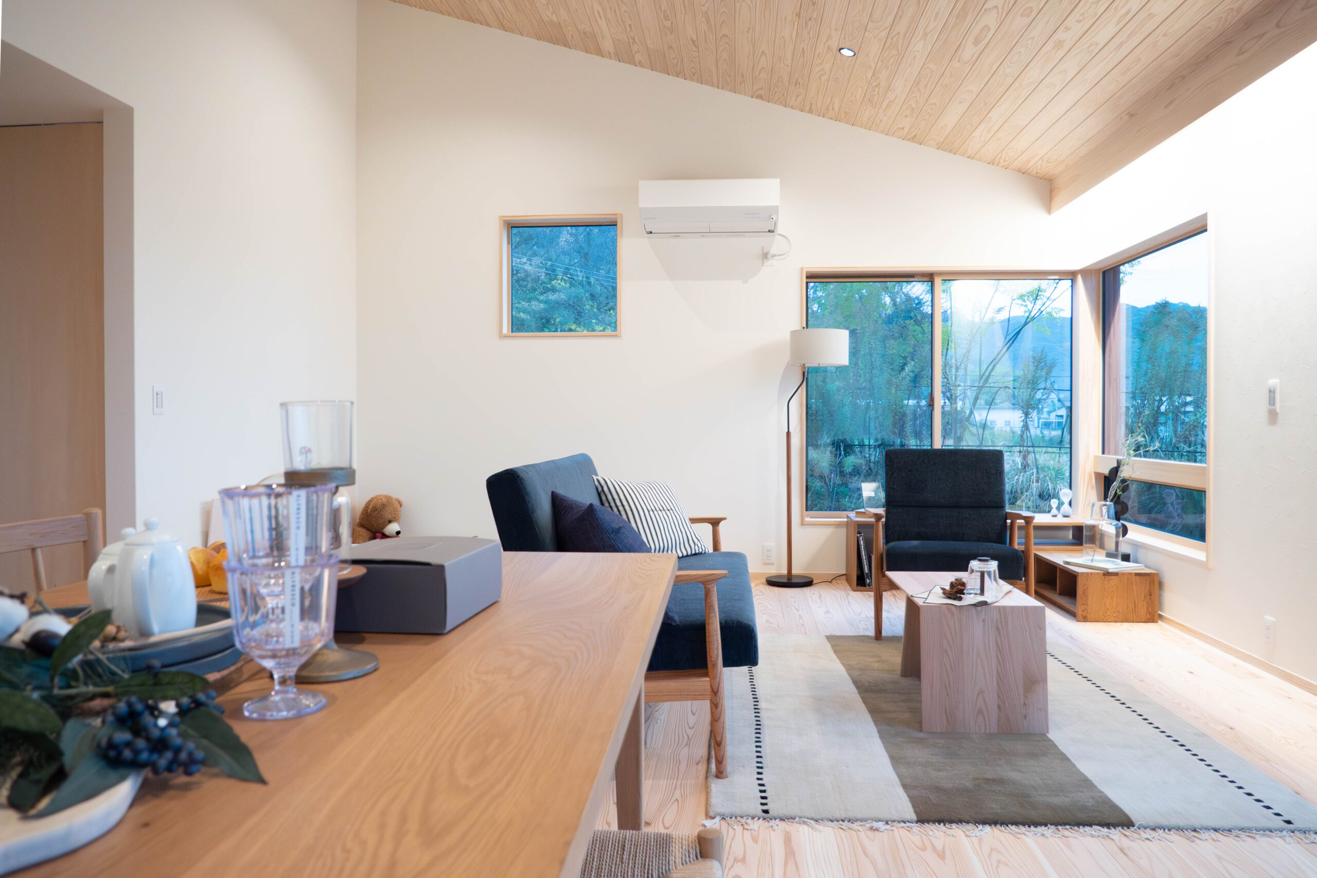 広々とした24帖のリビングは大らかに暮らしそのもの。 ものは少なく、余白を味わう体験を優先。