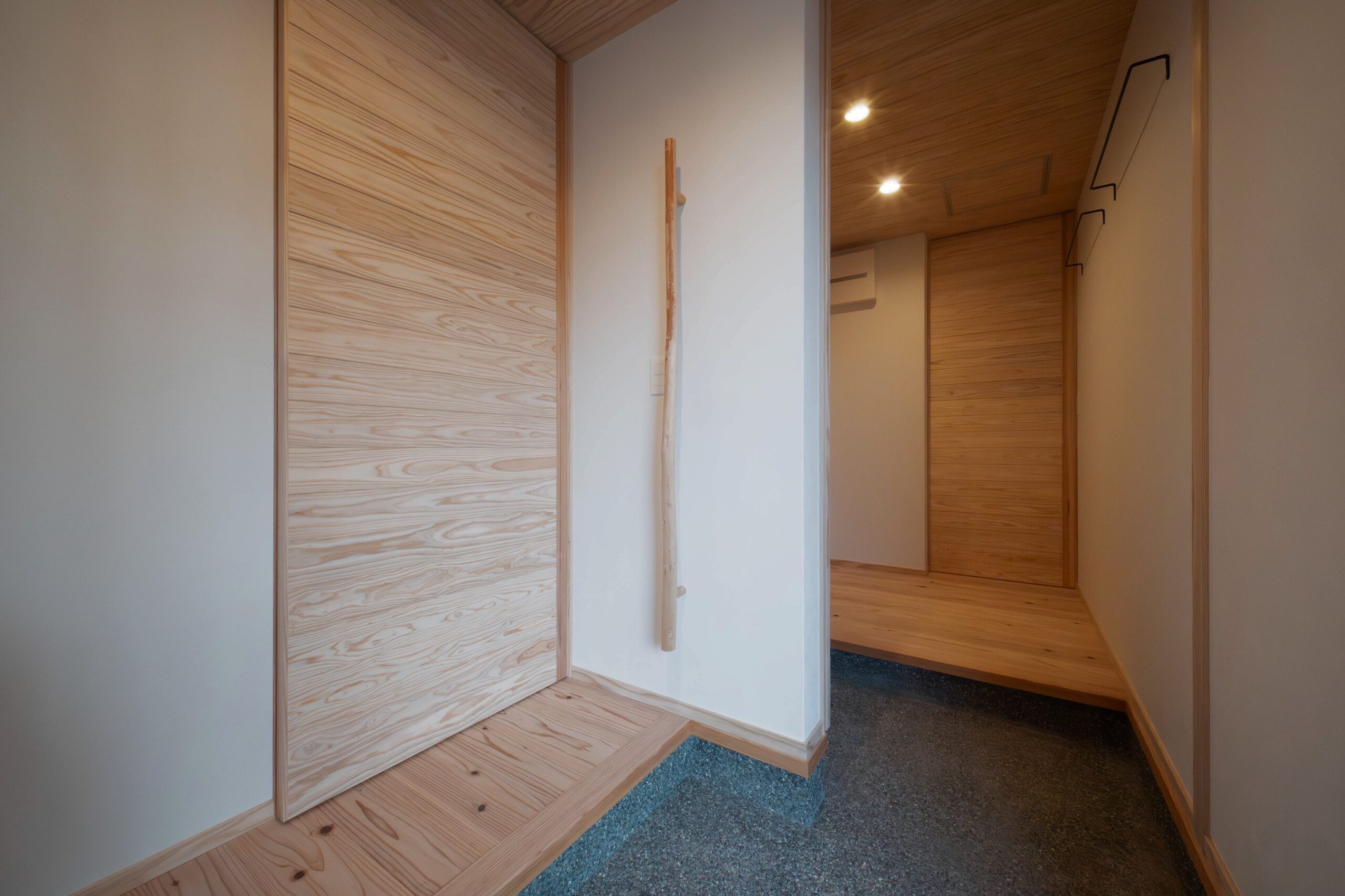大工さんの気配りで本物の木でバーを設置。手触りも最高。