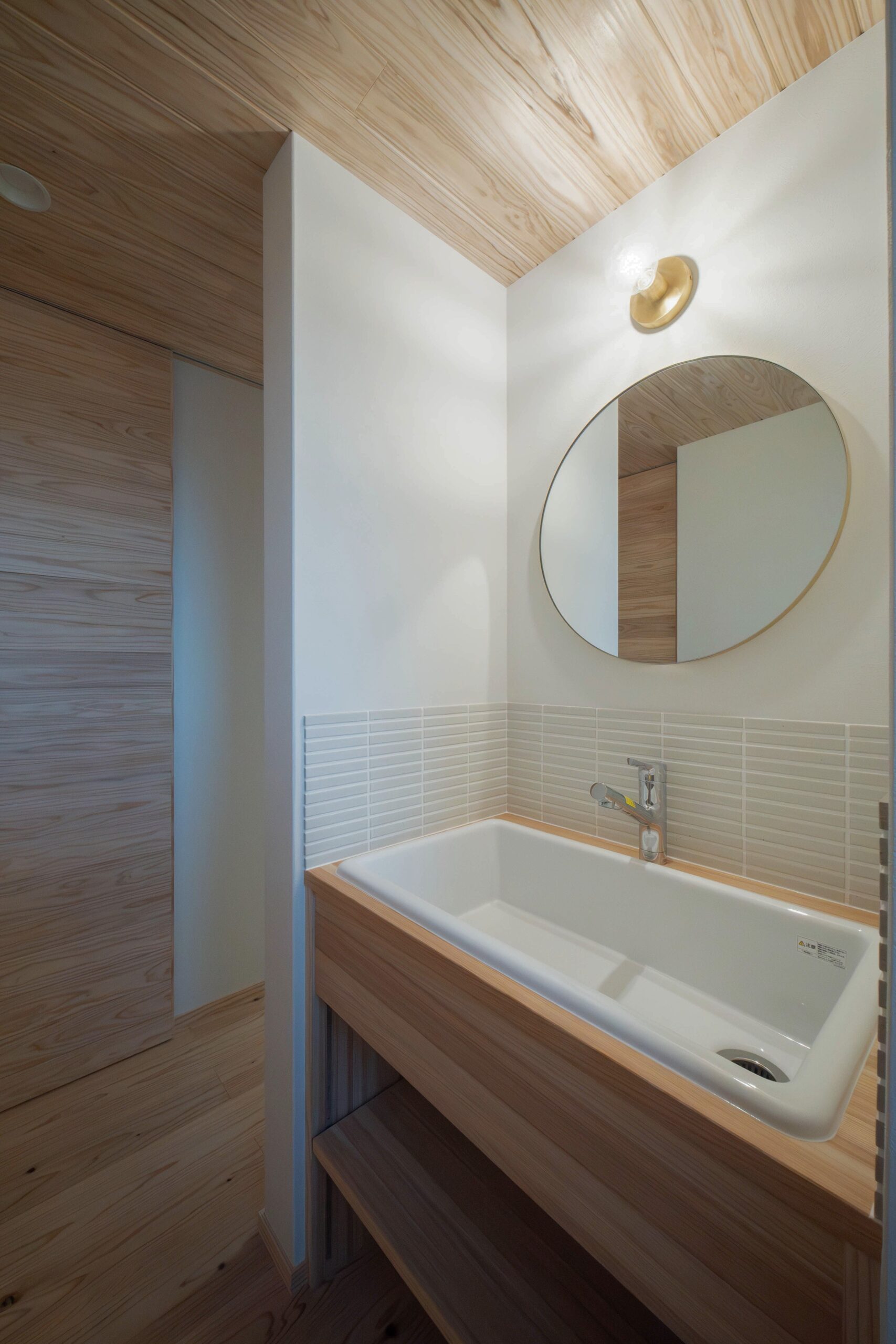 造作洗面はタイルと深型のシンクが素敵。
